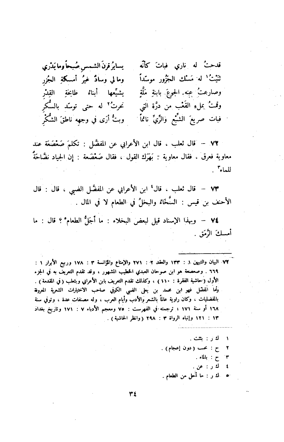 قال ثعلب، قال ابن الأعرابي عن المفضل الضبي، قال: قال الأحنف بن قيس: السخاء والبخل في الطعام لا في المال.