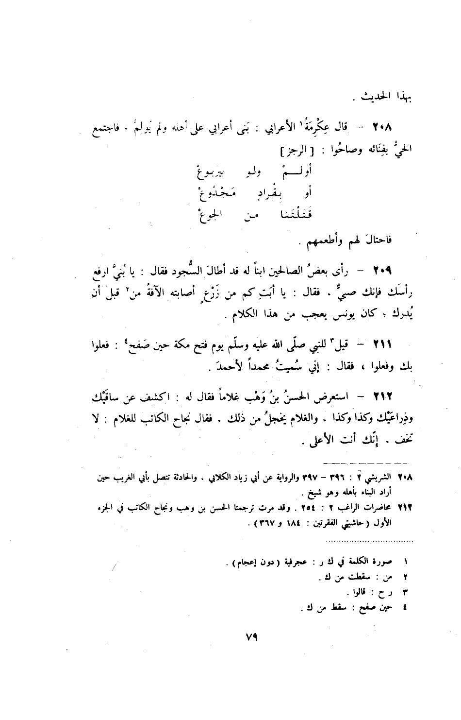 قال عكرمة الأعرابي: بنى أعرابي على أهله ولم يولم، فأجتمع الحي بفنائه وصاحوا: الرجز