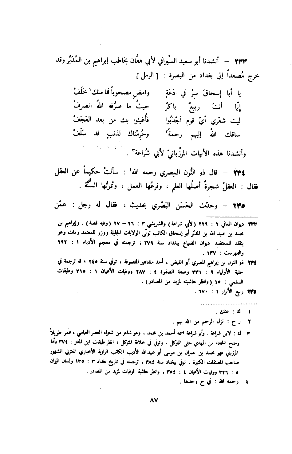 أنشدنا أبو سعيد السيرافي لأبي هفان يخاطب إبراهيم بن المدبر وقد خرج مصعداً إلى بغداد من البصرة: الرمل