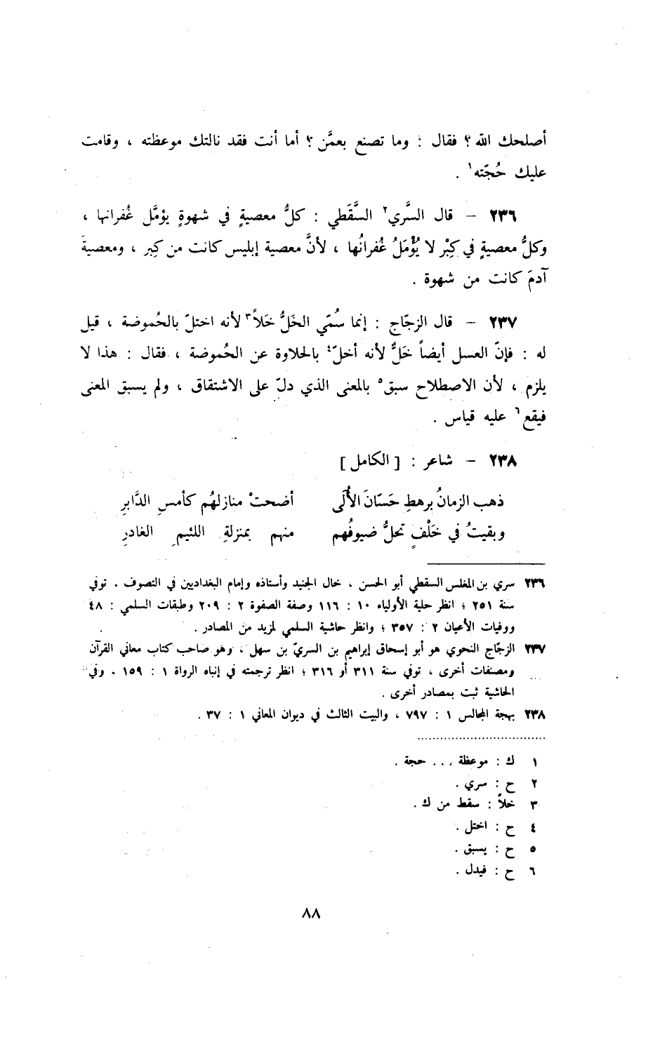 قال السري السقطي: كل معصية في شهوة يؤمل غفرانها، وكل معصية في كبر لا يؤمل غفرانها، لأن معصية إبليس كانت من كبر، ومعصية آدم كانت من شهوة.