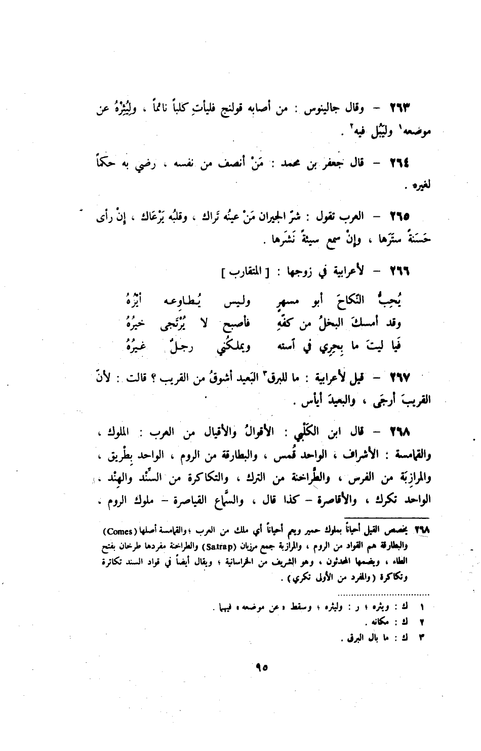 قال ابن الكلبي: الأقوال والأقيال من العرب: الملوك، والقمامسة: الأشراف، الواحد قمس، والبطارقة من الروم، الواحد بطريق، والمرازبة من الفرس، والطراخنة من الترك، والتكاكرة من السند والهند، الواحد تكرك، والأقاصرة - كذا قال، والسماع القياصرة - ملوك الروم،