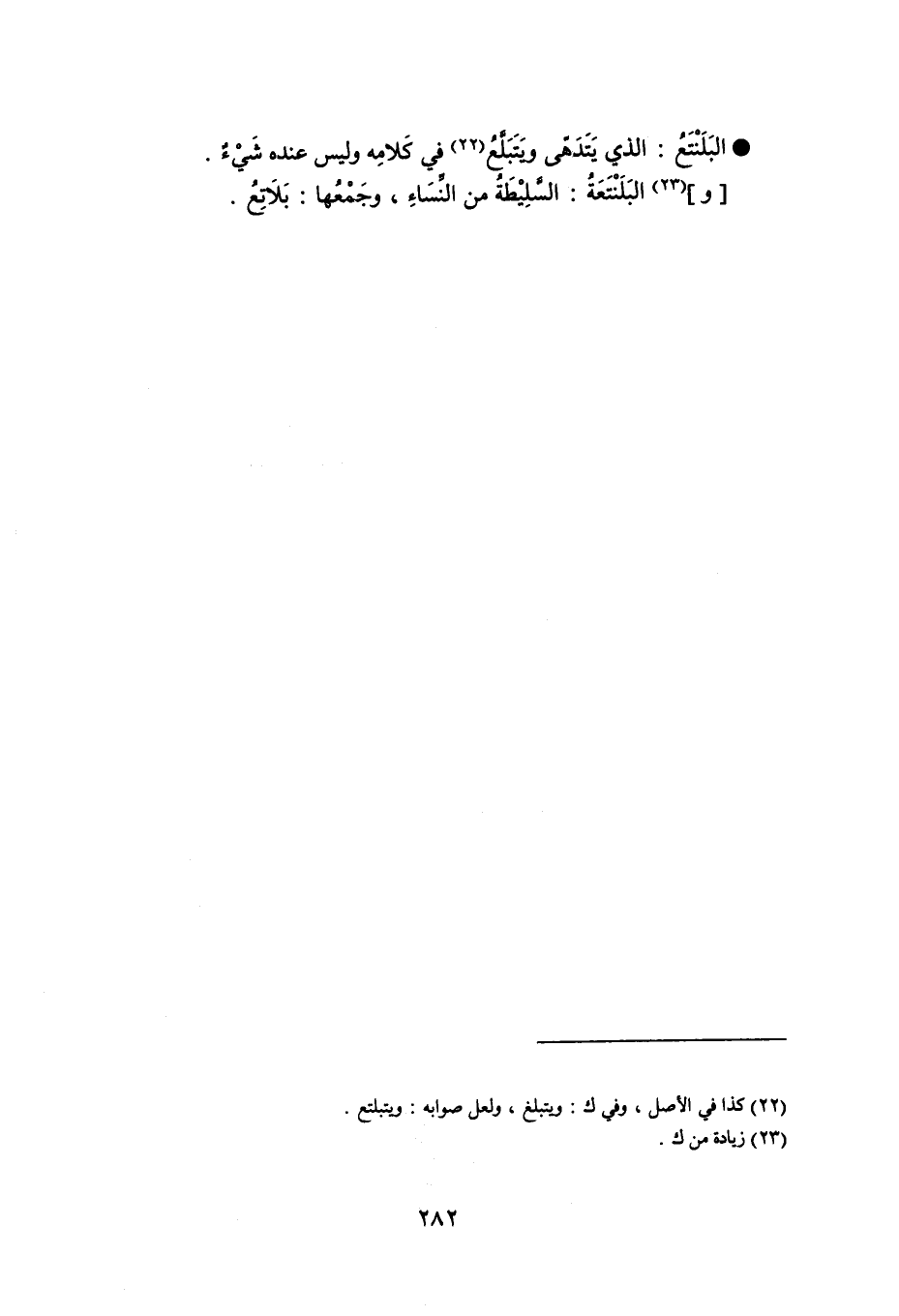 البَلًنْتَعُ الذي يَتَدَهَى ويَتَبَلَّعُ في كَلامِه وليس عنده شَيْءٌ والبَلَنْتَعَةُ السَّلِيْطَةُ من النِّسَاءِ ، وجَمْعُها بَلاَتِعُ .