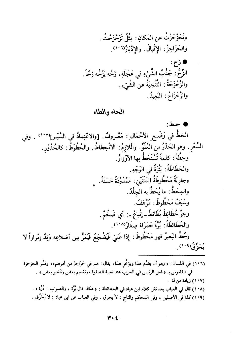 وتَحَزْحَزْتُ عن المَكانِ : مِثْلُ تَزَحْزَحْتُ . والحَزَاحِزُ : الإقْبالُ . والإِدْبَارُ . زح الزَّحُّ : جَذْبُ الشَّيْءِ في عَجَلَةٍ ، زَحَّه يَزُحُّه زَحّاً . والزَّحْزَحَةُ : التَّنْحِيَةُ عن الشَّيْءِ . والزّحْزَاح : البَعِيدُ .