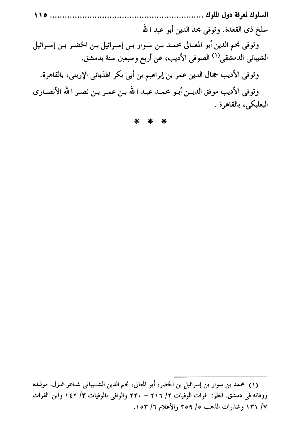 سلخ ذِي الْقعدَة. وَتُوفِّي مجد الدّين أَبُو عبد الله وَتُوفِّي نجم الدّين أَبُو الْمَعَالِي مُحَمَّد بن سوار بن إِسْرَائِيل بن الْخضر بن إِسْرَائِيل الشَّيْبَانِيّ الدِّمَشْقِي الصُّوفِي الأديب عَن أَربع وَسبعين سنة بِدِمَشْق. وَتُوفِّي الأديب جمال الدّين عمر بن إِبْرَاهِيم بن أبي بكر الهذباني الإربلي بِالْقَاهِرَةِ. وَتُوفِّي الأديب موفق الدّين أَبُو مُحَمَّد عبد الله بن عمر بن نصر الله الْأنْصَارِيّ البعلبكي بِالْقَاهِرَةِ.