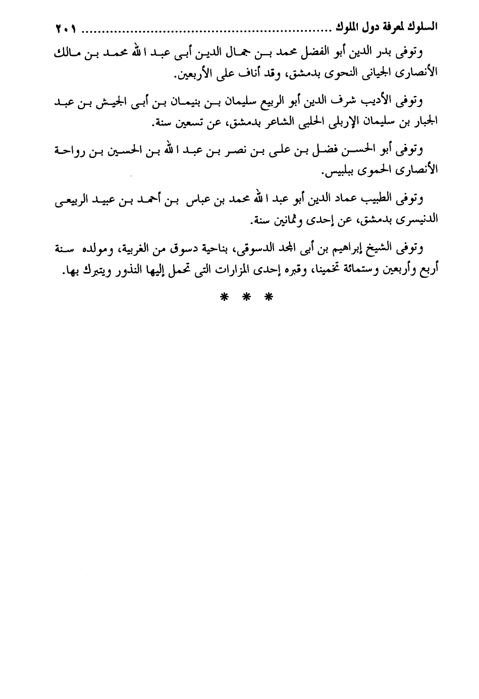 وَتُوفِّي بدر الدّين أَبُو الْفضل مُحَمَّد بن جمال الدّين أبي عبد الله مُحَمَّد بن مَالك الْأنْصَارِيّ الجياني النَّحْوِيّ بِدِمَشْق وَقد أناف على الْأَرْبَعين. وَتُوفِّي الأديب شرف الدّين أَبُو الرّبيع سُلَيْمَان بن بنيمان بن أبي الْجَيْش بن عبد الْجَبَّار بن سُلَيْمَان الإربلي الْحلَبِي الشَّاعِر بِدِمَشْق عَن تسعين سنة. وَتُوفِّي أَبُو الْحسن فضل بن على بن نصر بن عبد الله بن الْحُسَيْن بن رَوَاحَة الْأنْصَارِيّ الْحَمَوِيّ ببلبيس. وَتُوفِّي الطّيب عماد الدّين أَبُو عبد الله مُحَمَّد بن عَبَّاس بن أَحْمد بن عبيد الربيعي الدنيسري بِدِمَشْق عَن إِحْدَى وَثَمَانِينَ سنة. وَتُوفِّي الشَّيْخ إِبْرَاهِيم بن أبي الْمجد الدسوقي بِنَاحِيَة دسوق من الغربية ومولده سنة أَربع وَأَرْبَعين وسِتمِائَة تخمينا وقبره إِحْدَى المزارات الَّتِي تحمل إِلَيْهَا النذور ويتبرك بهَا.