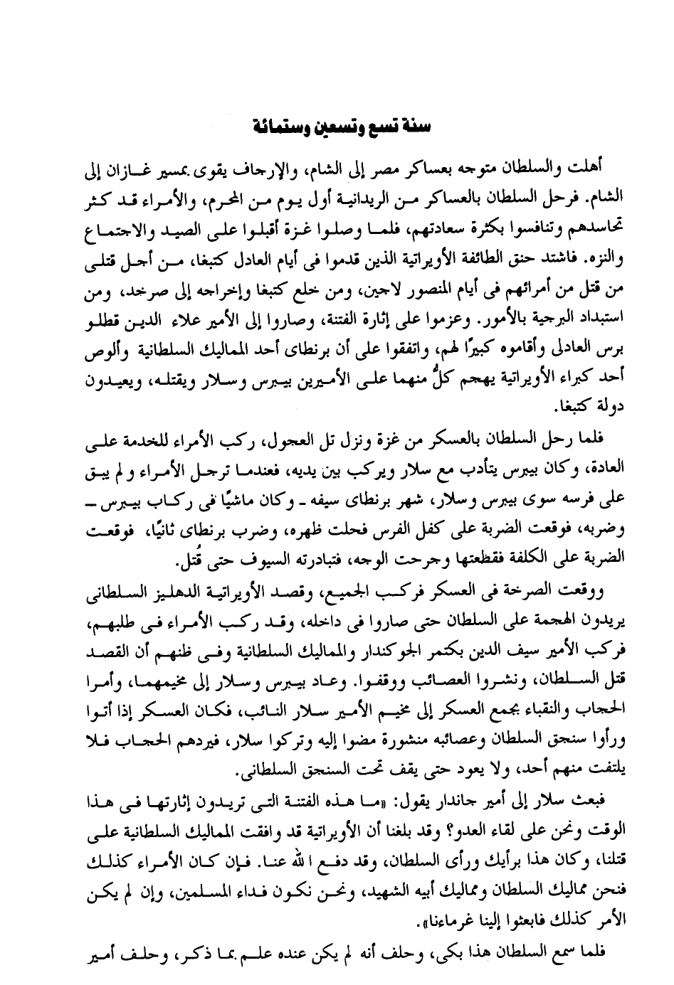 سنة تسع وَتِسْعين وسِتمِائَة أهلت وَالسُّلْطَان مُتَوَجّه بعساكر مصر إِلَى الشَّام والإرجاف يقوى بمسير غازان إِلَى الشَّام. فَرَحل السُّلْطَان بالعساكر من الريدانية أول يَوْم من الْمحرم والأمراء قد كثر تحاسدهم وتنافسوا بِكَثْرَة سعادتهم فَلَمَّا وصلوا غَزَّة أَقبلُوا على الصَّيْد والاجتماع والنزه. فَاشْتَدَّ حنق الطَّائِفَة الأويراتية الَّذين قدمُوا فِي أَيَّام الْعَادِل كتبغا من أجل قَتْلَى من قتل من أمرائهم فِي أَيَّام الْمَنْصُور لاجين وَمن خلع كتبغا وإخراجه إِلَى صرخد وَمن استبداد البرجية بالأمور. وعزموا على إثارة الْفِتْنَة وصاروا إِلَى الْأَمِير عَلَاء الدّين قطلو برس العادلي وأقاموه كَبِيرا لَهُم وَاتَّفَقُوا على أَن برنطاي أحد المماليك السُّلْطَانِيَّة وألوص أحد كبراء الأويراتية يهجم كل مِنْهُمَا على الأميرين بيبرس وسلار ويقتله ويعيدون دولة كتبغا. فَلَمَّا رَحل السُّلْطَان بالعسكر من غَزَّة وَنزل تل العجول ركب الْأُمَرَاء للْخدمَة على الْعَادة وَكَانَ بيبرس يتأدب مَعَ سلار ويركب بَين يَدَيْهِ فعندما ترجل الْأُمَرَاء وَلم يبْق على فرسه سوى بيبرس وسلار شهر برنطاى سَيْفه - وَكَانَ مَاشِيا فِي ركاب بيبرس - وضربه فَوَقَعت الضَّرْبَة على كفل الْفرس فَحلت ظَهره وَضرب برنطاي ثَانِيًا فَوَقَعت الضَّرْبَة على الكلفة فقطعتها وجرحت وَوَقعت الصرخة فِي الْعَسْكَر فَركب الْجَمِيع وَقصد الأويراتية الدهليز السلطاني يُرِيدُونَ الهجمة على السُّلْطَان حَتَّى صَارُوا فِي دَاخله وَقد ركب الْأُمَرَاء فِي طَلَبهمْ فَركب الْأَمِير سيف الدّين بكتمر الجوكندار والمماليك السُّلْطَانِيَّة وَفِي ظنهم أَن الْقَصْد قتل السُّلْطَان ونشروا العصائب ووقفوا. وَعَاد بيبرس وسلار إِلَى مخيمهما وأمرا الْحجاب والنقباء بِجمع الْعَسْكَر إِلَى مخيم الْأَمِير سلار النَّائِب فَكَانَ الْعَسْكَر إِذا أَتَوا وَرَأَوا سنجق السُّلْطَان وعصائبه منشورة مضوا إِلَيْهِ وَتركُوا سلار فيردهم الْحجاب فَلَا يلْتَفت مِنْهُم أحد وَلَا يعود حَتَّى يقف تَحت السنجق السلطاني. فَبعث سلار إِلَى أَمِير جاندار يَقُول: مَا هَذِه الْفِتْنَة الَّتِي تُرِيدُونَ إثارتها فِي هَذَا الْوَقْت وَنحن على لِقَاء الْعَدو وَقد بلغنَا أَن الأويراتية قد وَافَقت المماليك السُّلْطَانِيَّة على قتلنَا وَكَانَ هَذَا بِرَأْيِك وَرَأى السُّلْطَان وَقد دفع الله عَنَّا. فَإِن كَانَ الْأُمَرَاء كَذَلِك فَنحْن مماليك السُّلْطَان ومماليك أَبِيه الشَّهِيد وَنحن نَكُون فدَاء الْمُسلمين وان لم يكن الْأَمر كَذَلِك فَابْعَثُوا الينا غرماءنا. فَلَمَّا سمع السُّلْطَان هَذَا بَكَى وَحلف إِنَّه لم يكن عِنْده علم. مِمَّا ذكر وَحلف أَمِير