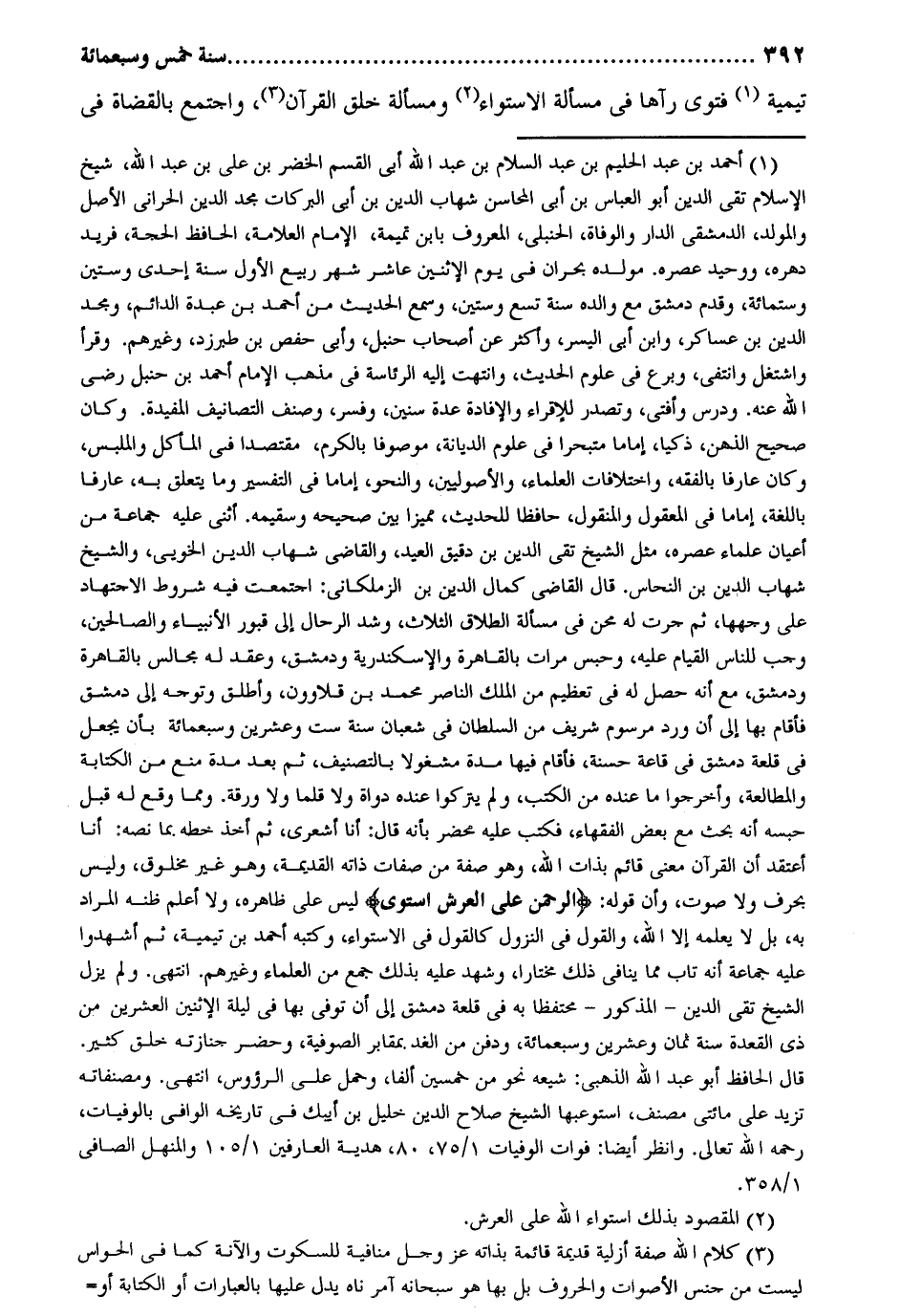 تَيْمِية فَتْوَى رَآهَا قي مسالة الاسْتوَاء وَمَسْأَلَة خلق الْقُرْآن وَاجْتمعَ بالقضاة فِي