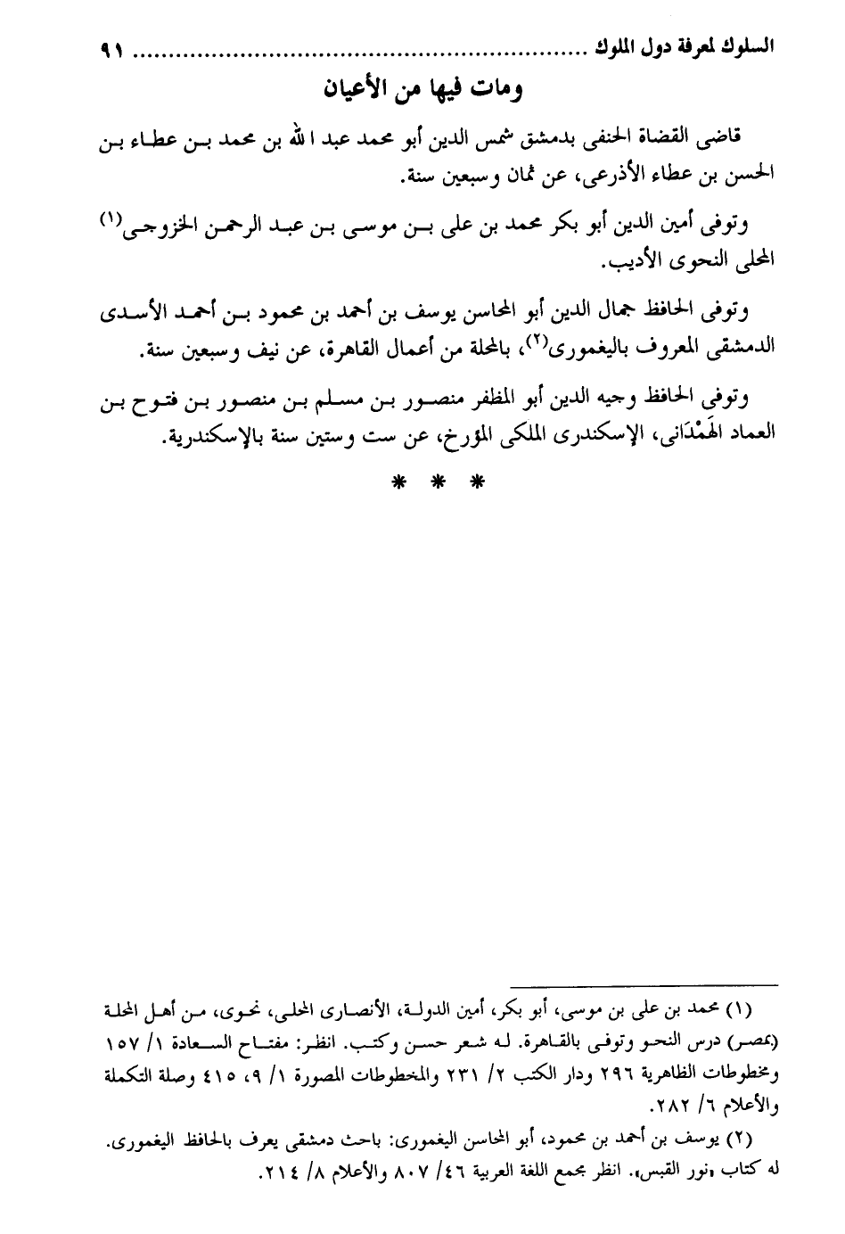 وَمَات فِيهَا من الْأَعْيَان قَاضِي الْقُضَاة الْحَنَفِيّ بِدِمَشْق شمس الدّين أَبُو مُحَمَّد عبد الله بن مُحَمَّد بن عَطاء بن الْحسن بن عَطاء الْأَذْرَعِيّ عَن ثَمَان وَسبعين سنة. وَتُوفِّي أَمِين الدّين أَبُو بكر مُحَمَّد بن عَليّ بن مُوسَى بن عبد الرَّحْمَن الخزوجي الْمحلي النَّحْوِيّ الأديب. وَتُوفِّي الْحَافِظ جمال الدّين أَبُو المحاسن يُوسُف بن أَحْمد بن مَحْمُود بن أَحْمد الْأَسدي الدِّمَشْقِي الْمَعْرُوف باليغموري بالمحلة من أَعمال الْقَاهِرَة عَن نَيف وَسبعين سنة. وَتُوفِّي الْحَافِظ وجيه الدّين أَبُو المظفر مَنْصُور بن مُسلم بن مَنْصُور بن فتوح بن الْعِمَاد الْهَمدَانِي الإسكندري الملكي المؤرخ عَن سِتّ وَسِتِّينَ سنة بالإسكندرية.
