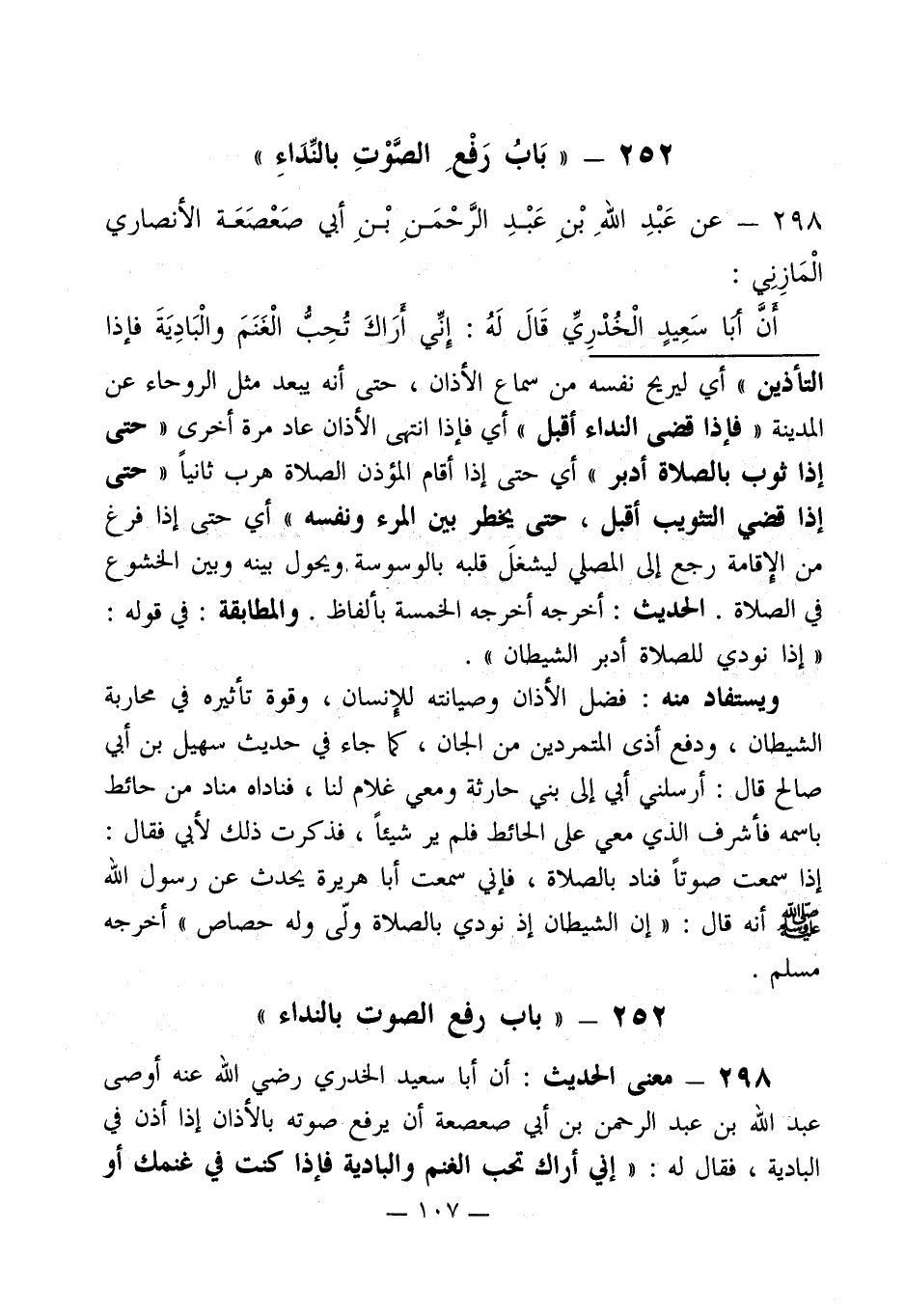252 - " بَابُ رَفْعَ الصَّوْتِ بالنِّدَاءِ "