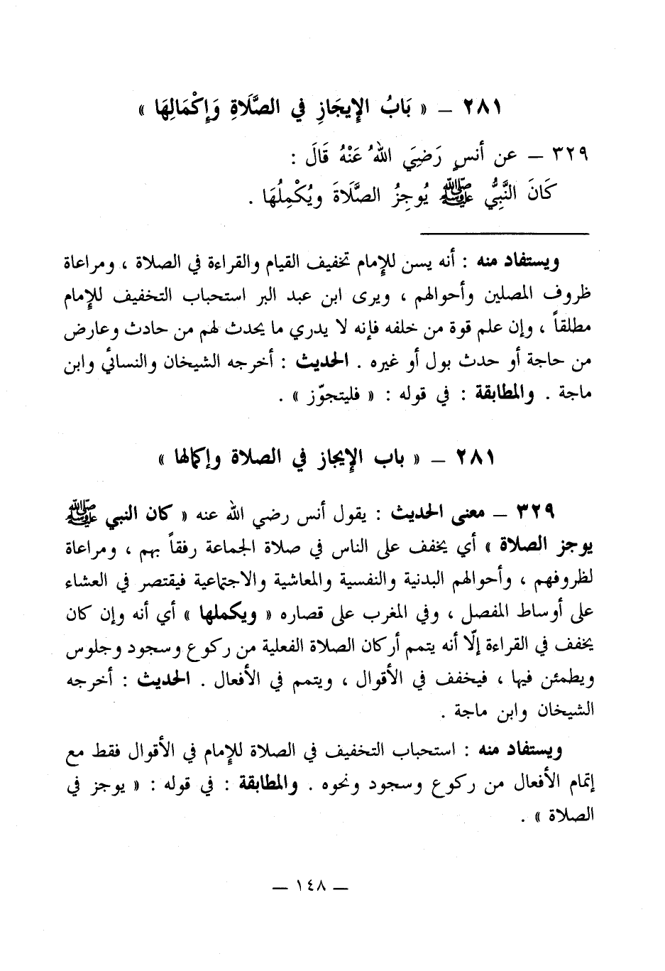 281 - "بَابُ الإيجَازِ في الصَّلَاةِ وَإكْمَالِهَا "
