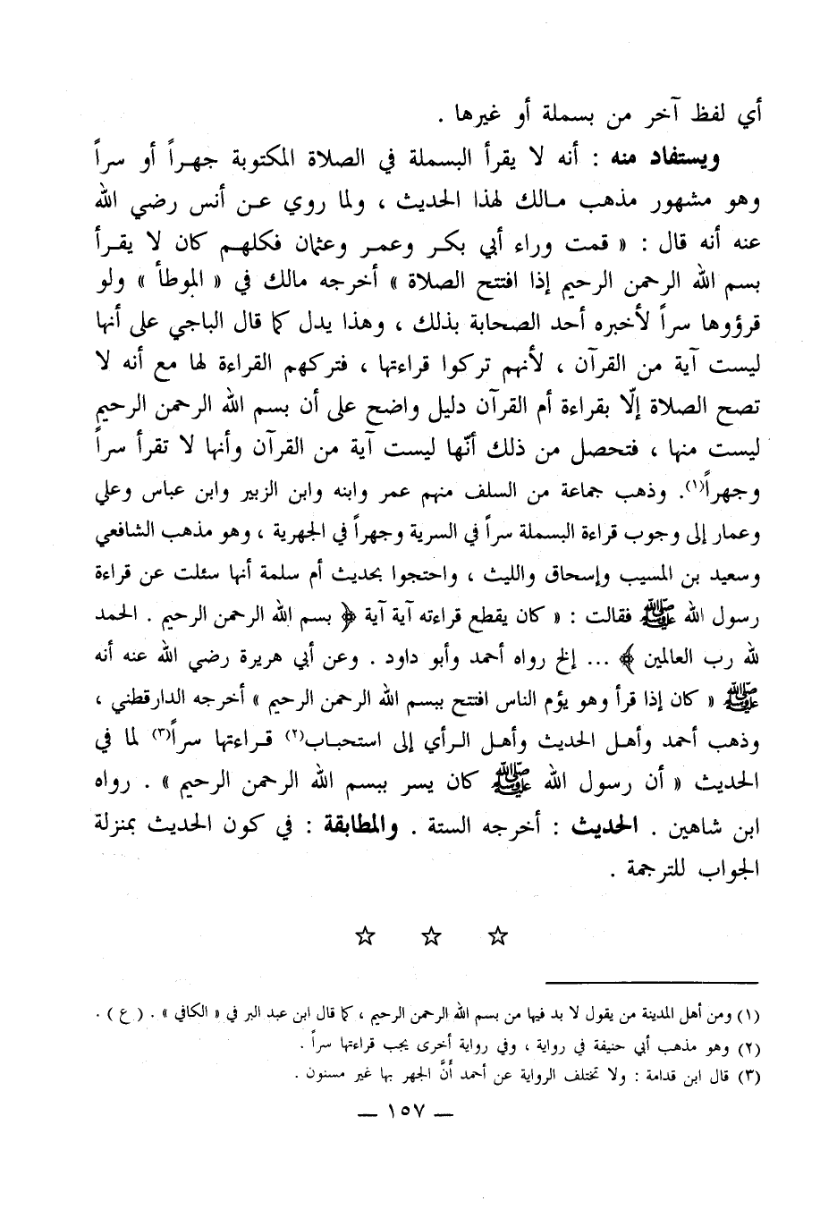 (¬3) قال ابن قدامة: ولا تختلف الرواية عن أحمد أنَّ الجهر بها غير مسنون.