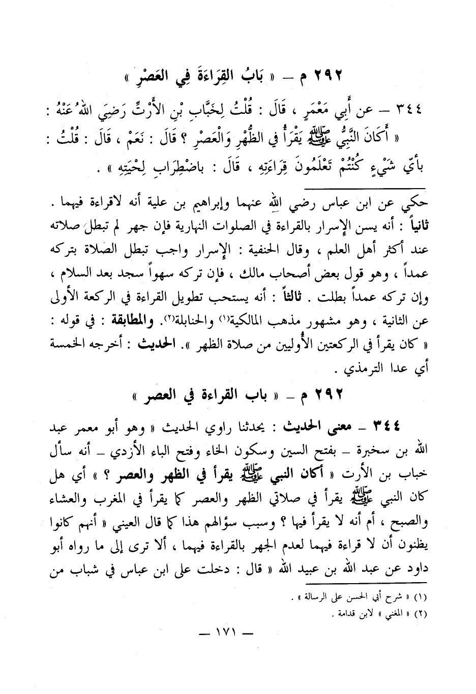 292 م - " باب القراءة في العصر "