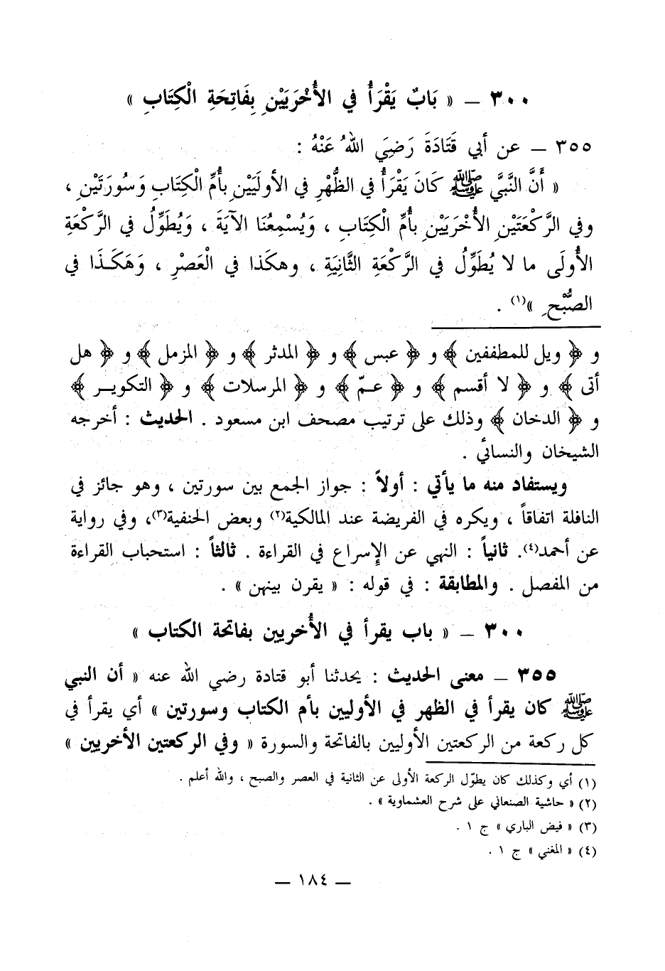300 - " بَابٌ يَقْرأُ في الأخرَيَيْنِ بِفَاتِحَةِ الْكِتَابِ "