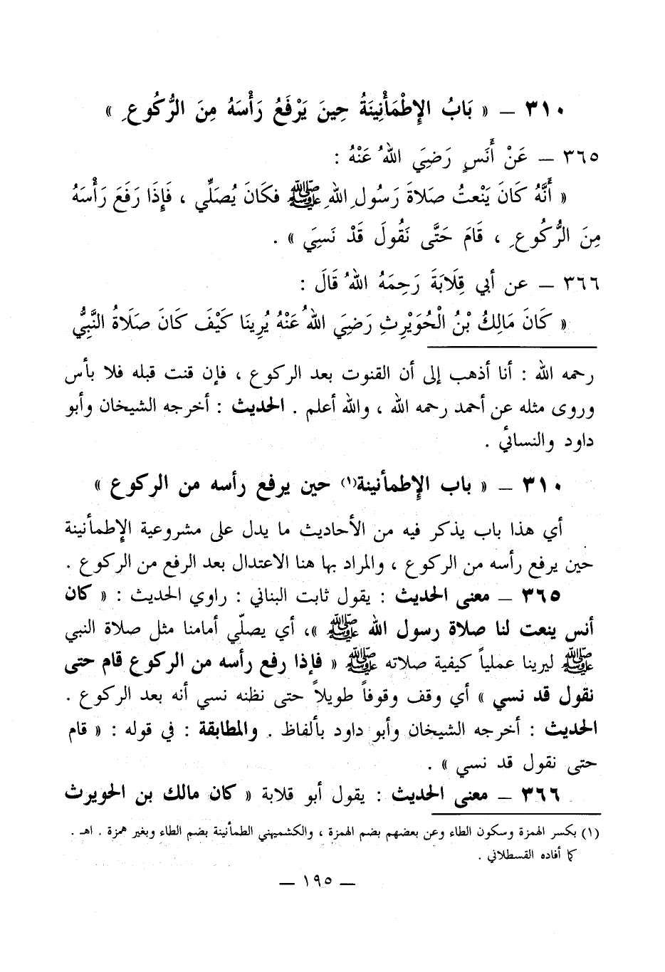 310 - " بَابُ الإِطْمَأنِينَةُ حِينَ يَرْفَعُ رَأسَهُ مِنَ الرُّكُوعِ "