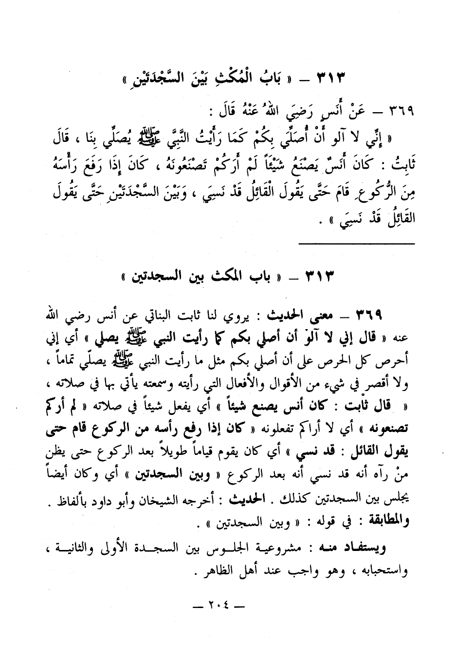 313 - " بَابُ الْمُكْثِ بَيْنَ السَّجْدَتيْنِ "