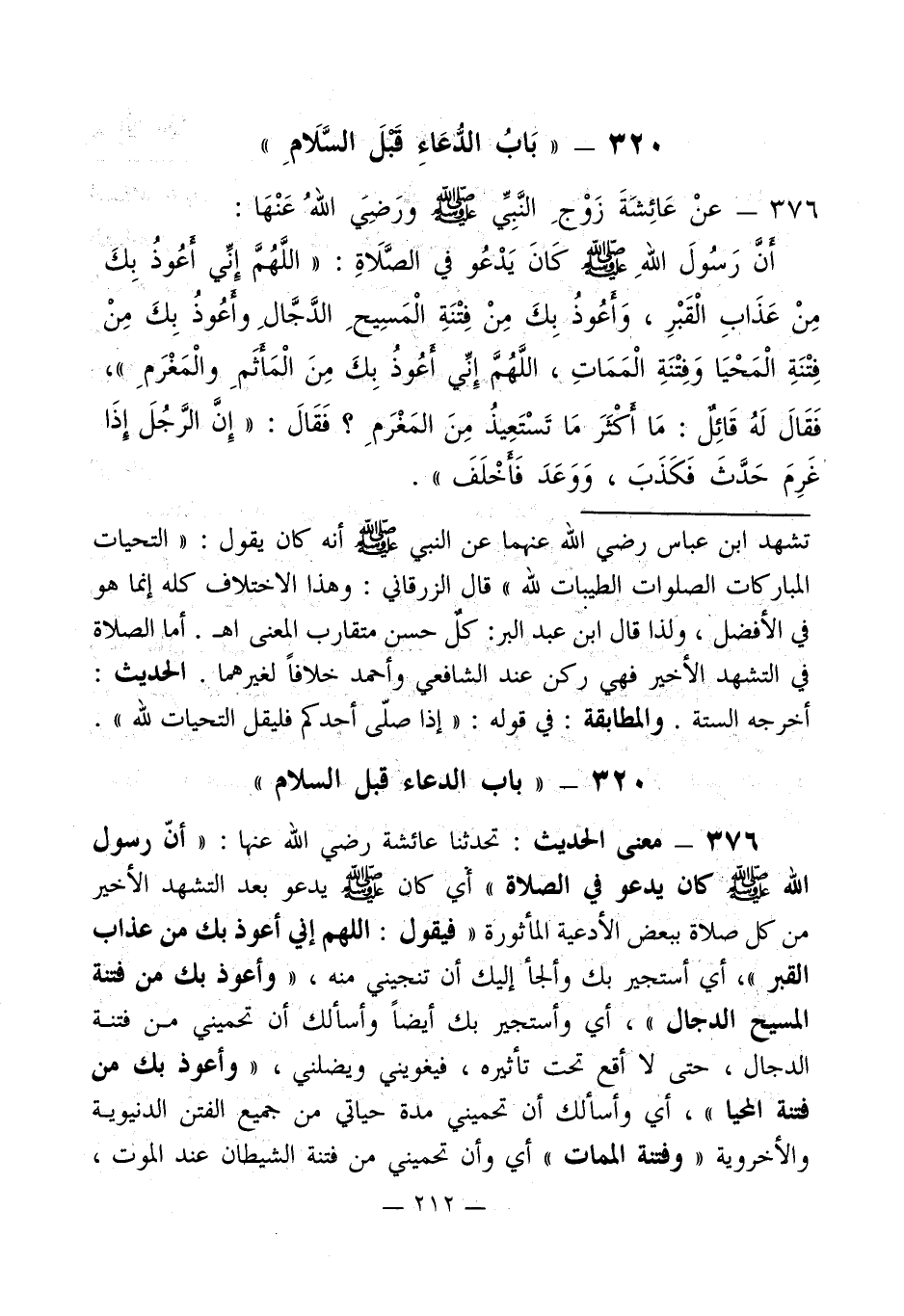 320 - " بَابُ الدُّعَاءِ قَبلَ السَّلَامِ "