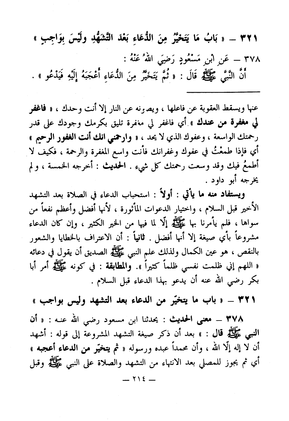 321 - " باب ما يتخيّر من الدعاء بعد التشهد وليس بواجب "