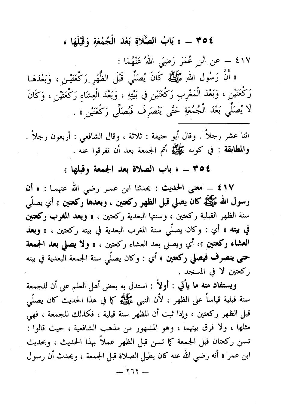 354 - " بَابُ الصَّلَاةِ بَعْدَ الْجُمُعَةِ وقَبْلَهَا "