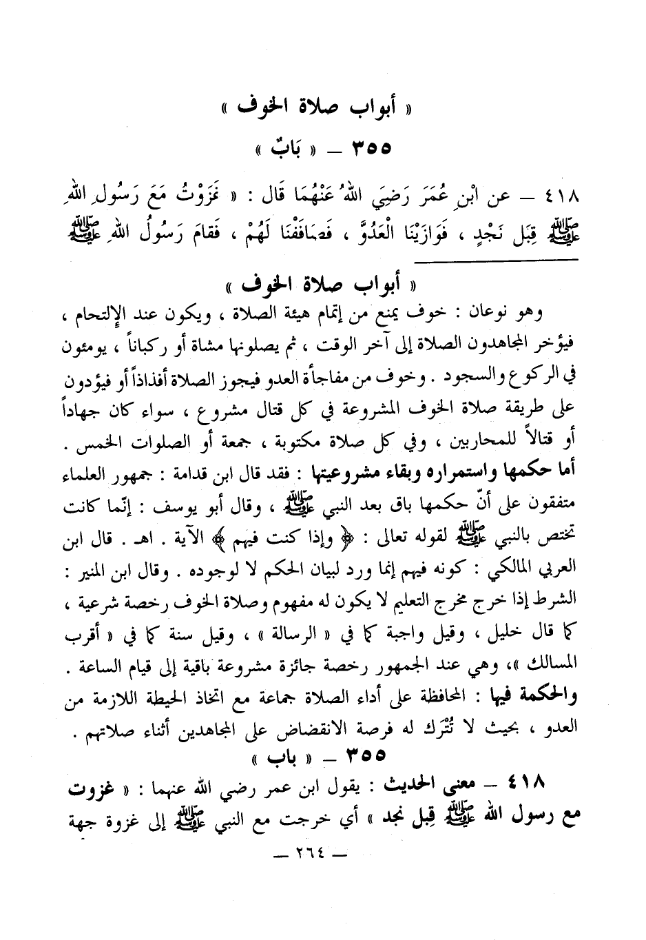 418 - عن ابْنِ عُمَرَ رَضِيَ اللهُ عَنْهُمَا قَال: " غزَوْتُ مَعَ رَسُولِ اللهِ - صلى الله عليه وسلم - قِبَل نَجْدٍ، فَوَازَيْنَا الْعَدُوَّ، فَصافَفْنَا لَهُمْ، فَقامَ رَسُولُ اللهَ - صلى الله عليه وسلم -