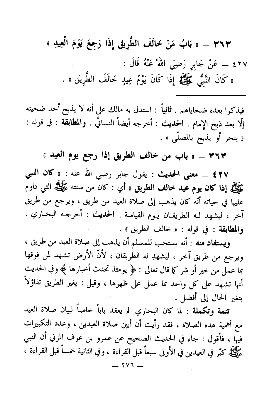 363 - " باب من خالف الطريق إذا رجع يوم العيد "