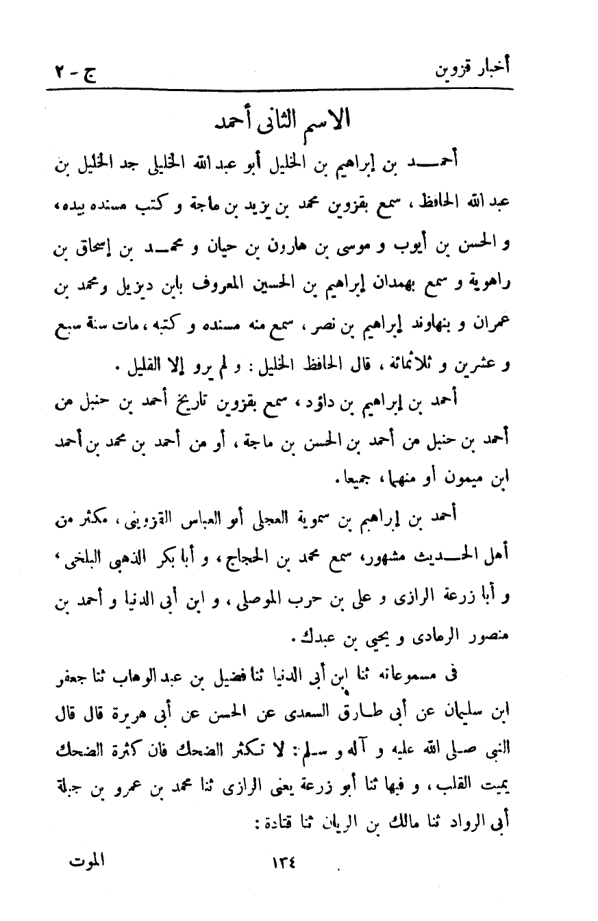 أَحْمَد بْن إبراهيم بن داؤد سمع بقزوين تاريخ أَحْمَد بْن حنبل من أَحْمَد بْن حنبل من أَحْمَد بْن الحسن بْن ماجة أو من أَحْمَد بْن محمد بن أحمد ابن ميمون أو منهما جميعا.