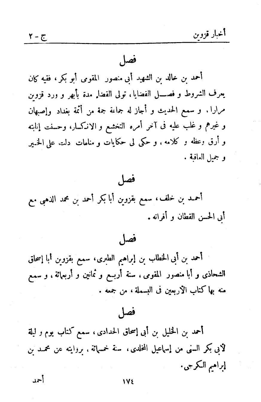 أحمد بْن الخليل بْن أبي إسحاق الحدادي سمع كتاب يوم وليلة لأبي بكر السني من إِسْمَاعِيل المخلدي سنة خمسمائة بروايته عَنْ مُحَمَّدِ بْنِ إبراهيم الكرجي.
