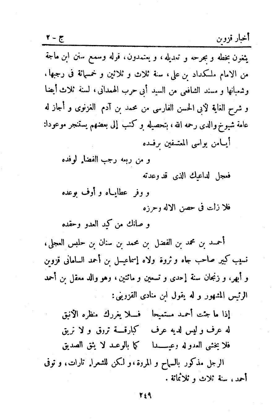 الرجل مذكور بالسماح والمروة ولكن للشعراء تارات وتوفي أَحْمَد سنة ثلاث وثلاثمائة.