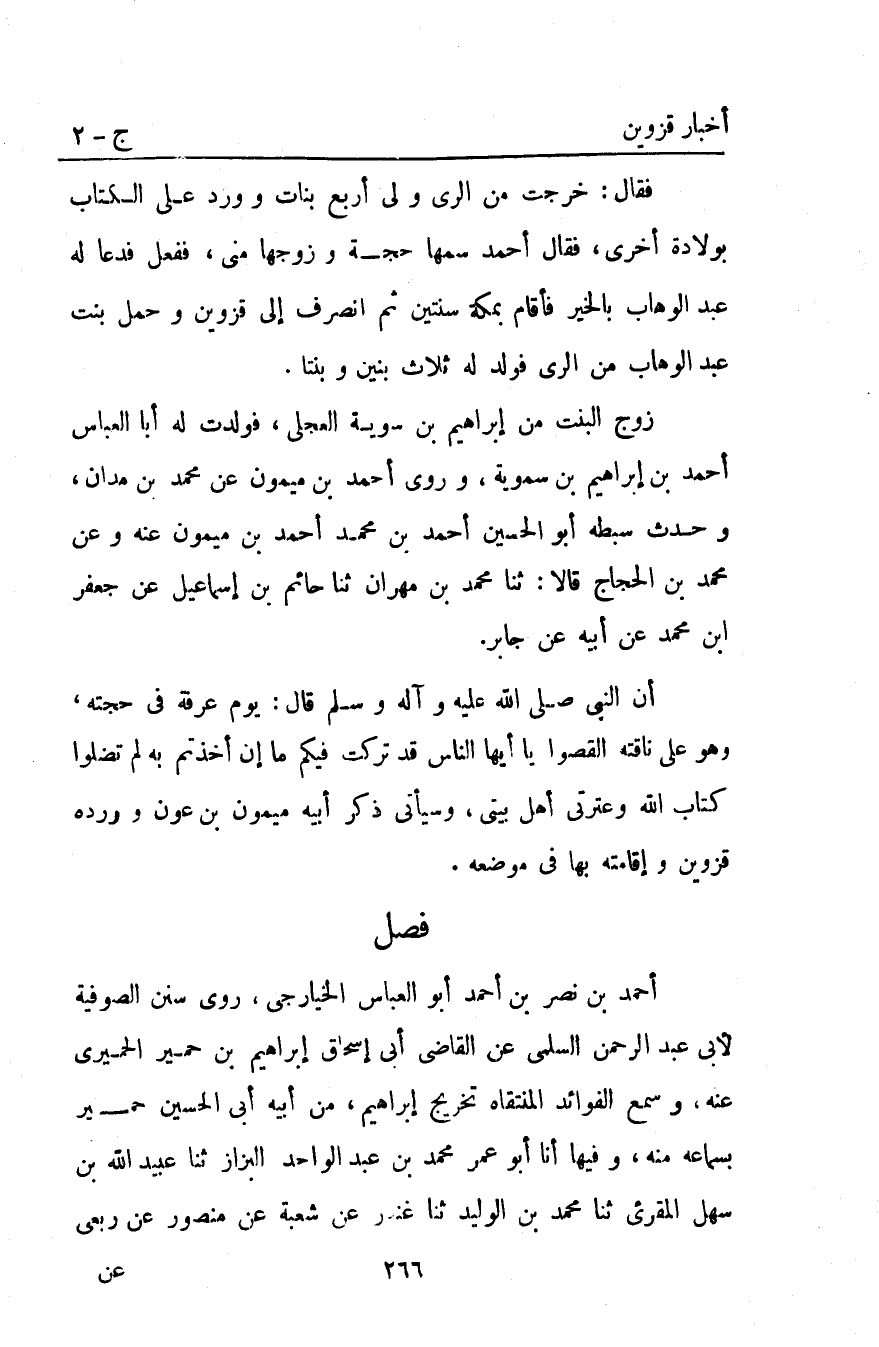 أَنَّ النَّبِيَّ صَلَّى اللَّهُ عَلَيْهِ وآله وسلم صلى قَالَ: يَوْمَ عَرَفَةَ فِي حَجَّتِهِ وهو على ناقته القصوا "يَا أَيُّهَا النَّاسُ قَدْ تَرَكْتُ فِيكُمْ مَا إِنْ أَخَذْتُمْ بِهِ لَمْ تَضِلُّوا كِتَابَ اللَّهِ وَعِتْرَتِي أَهْلَ بَيْتِي" وسيأتي ذكر أبيه ميمون بْن عون ورده قزوين وإقامته بها في موضعه.