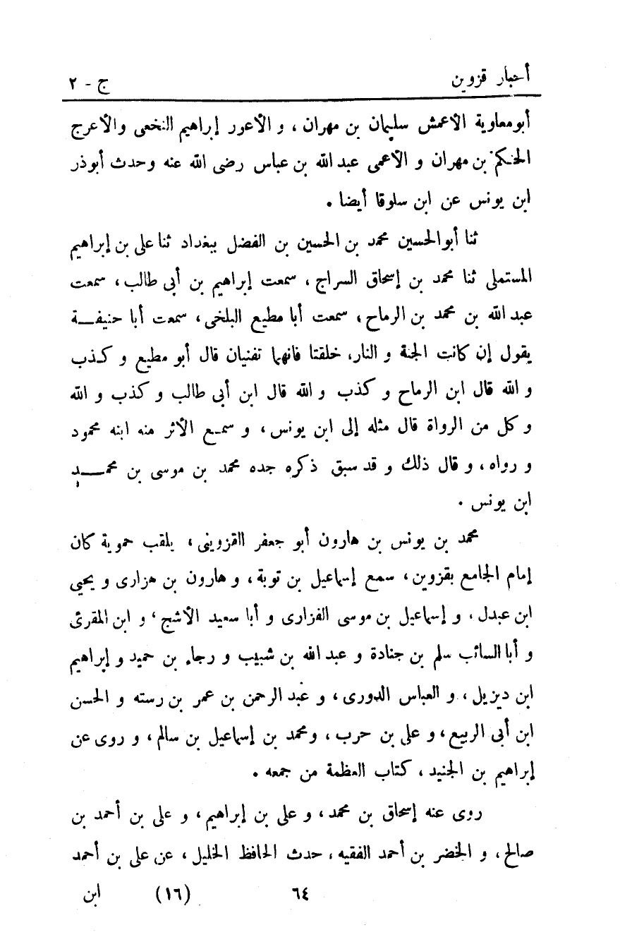 ثنا أَبُو الْحُسَيْنِ مُحَمَّدُ بْنُ الحسين بْن الفضل ببغداد ثنا علي بْن إبراهيم المستملي ثنا مُحَمَّد بْن إسحاق السراج سمعت إبراهيم بْن أبي طالب سمعت عَبْدُ اللَّهِ بْنُ مُحَمَّدِ بْنِ الرماح سمعت أبا مطيع البلخي سمعت أبا حنيفة يقول إن كانت الجنة والنار خلقتا فإنهما تفنيان قَالَ أَبُو مطيع وكذب والله قَالَ ابن الرماح وكذب والله قَالَ ابن أبي طالب وكذب والله وكل من الرواة قَالَ مثله إِلَى ابن يونس وسمع الأثر منه ابنه محمود ورواه وقال ذلك وقد سبق ذكره جده مُحَمَّد بْن مُوسَى بن محمد ابن يونس.