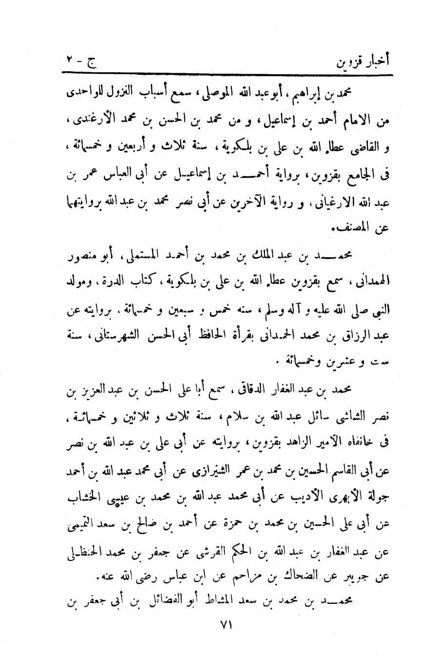 مُحَمَّد بْن عَبْدِ الغفار الدقاقي سمع أبا علي الحسن بْن عَبْدِ العزيز بْن نصر الشاشي سائل عَبْد اللَّهِ بْن سلام سنة ثلاث وثلاثين وخمسمائة فِي خانقاه الأمير الزاهد بِقَزْوِينَ بروايته عن أبي علي بْن عَبْدِ اللَّهِ بْن نصر عن أبي القاسم الحسين بْن مُحَمَّد بْن عمر الشيرازي عن أبي مُحَمَّدٍ عَبْدُ اللَّهِ بْنُ أَحْمَدَ جولة الأبهري الأديب عن أبي مُحَمَّدٍ عَبْدُ اللَّهِ بْنُ مُحَمَّدٍ بْن عِيسَى الخشاب عن أبي عَلَى الحسين بْن مُحَمَّد بْن حمزة عن أَحْمَد بْن صالح بْن سعد التميمي عن عَبْد الغفار بْن عَبْدِ اللَّهِ بْن الحكم القرشي عن جعفر بْن مُحَمَّد الحنظلي عن جويبر عن الضحاك بْن مزاحم عن ابن عَبَّاس رَضِيَ اللَّهُ عَنْهُ.