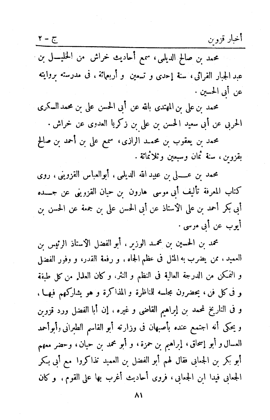 مُحَمَّد بْن يعقوب بْن مُحَمَّد الرازي سمع علي بْن أَحْمَدَ بْنِ صَالِحٍ بِقَزْوِينَ سَنَةَ ثمان وسبعين وثلاثمائة.