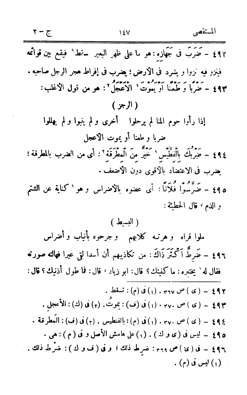 493 - ضربا وطعنا اَوْ يَمُوت الاعجل هُوَ من قَول الْأَغْلَب