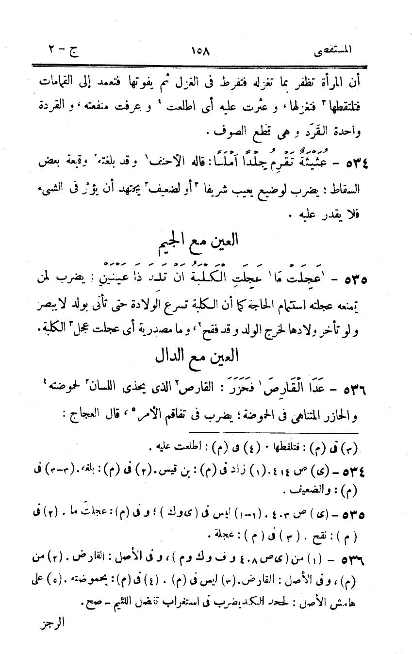 536 - عدا القارص فحزر القارص الذى يحذى اللِّسَان لحموضته والحازر المتناهى فى الحموضة يضْرب فى تفاقم الْأَمر قَالَ العجاج