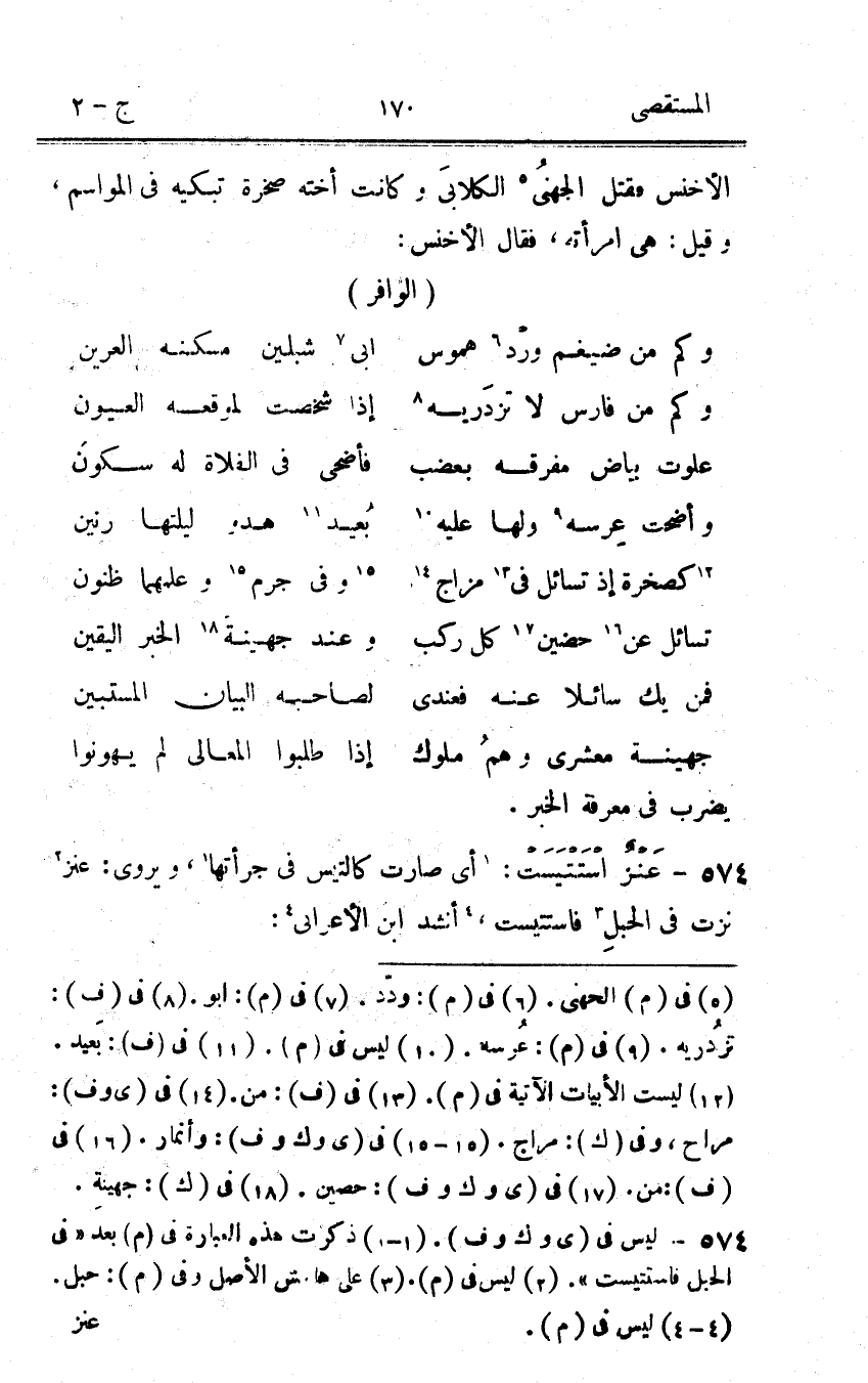 574 - عنز استتيست أى صَارَت كالتيس فى جرأتها ويروى عنز نزت فى الْحَبل فاستتيست أنْشد ابْن الأعرابى