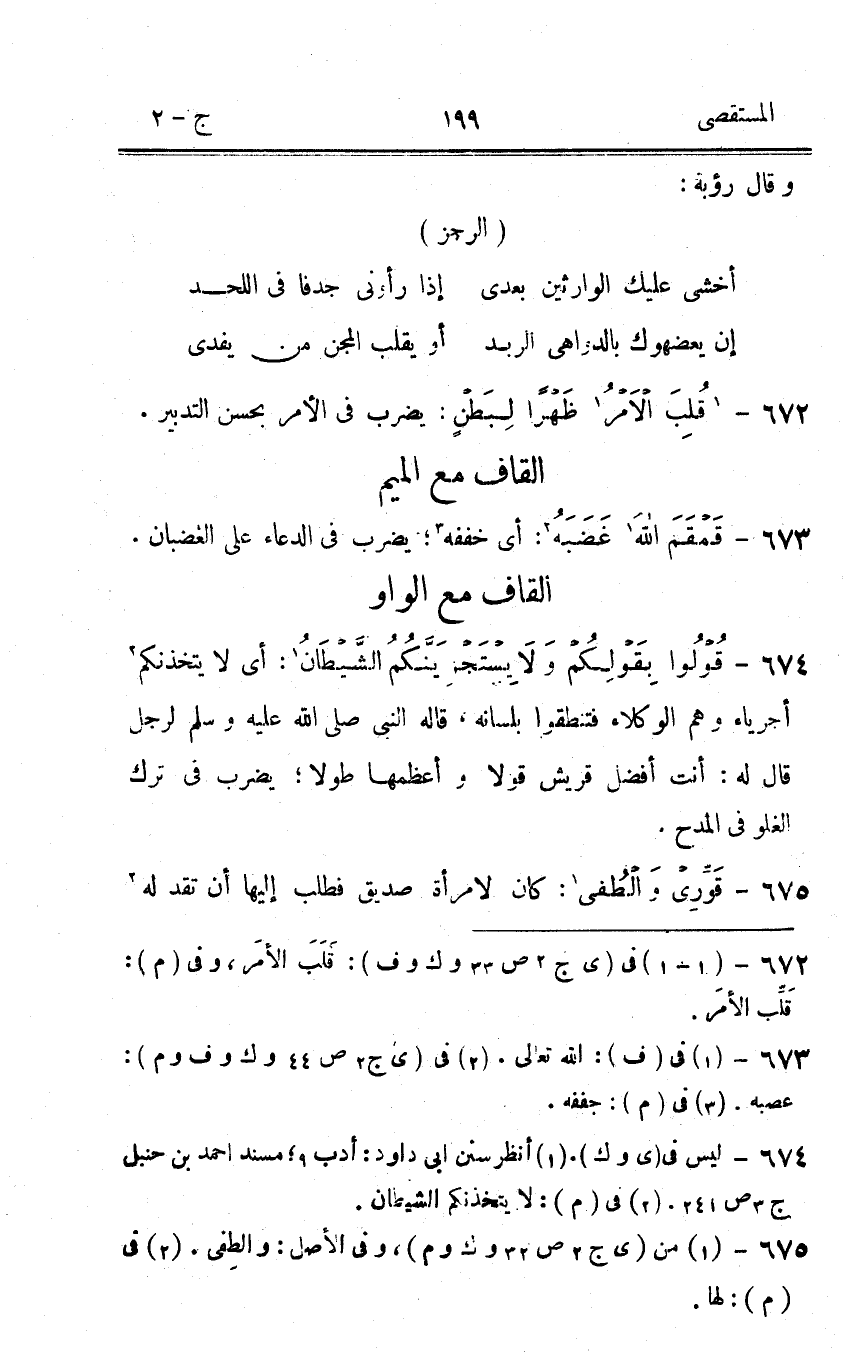 673 - قمقم الله غَضَبه أى خففه يضْرب فى الدُّعَاء على الغضبان