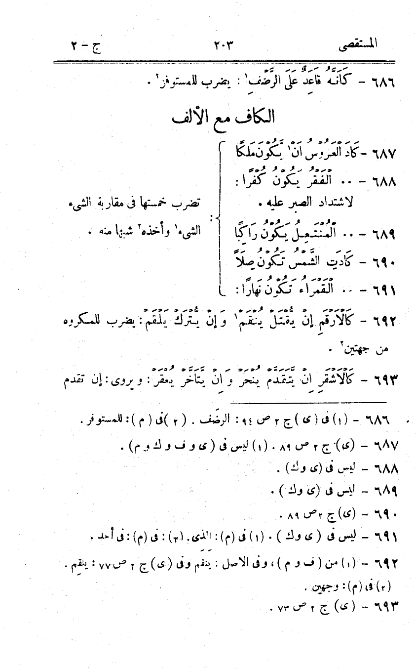 691 - 00 القمراء تكون نَهَارا ضرب خمستها فى مقاربة الشىء الشىء وَأَخذه شبها مِنْهُ