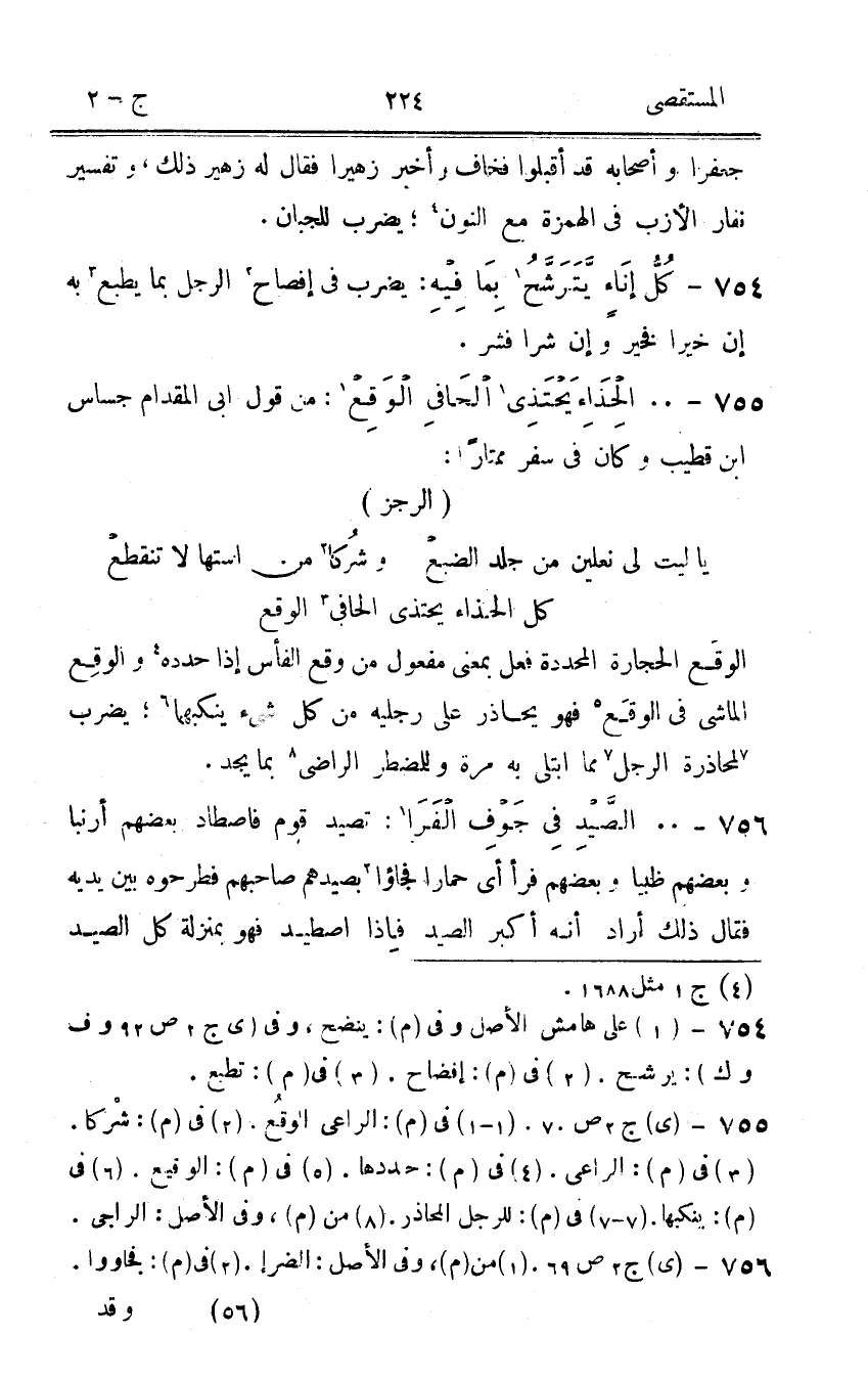 755 - 00 الْحذاء يحتذى الحافى الوقع من قَول ابى الْمِقْدَام جساس ابْن قطيب وَكَانَ فى سفر ممتارا