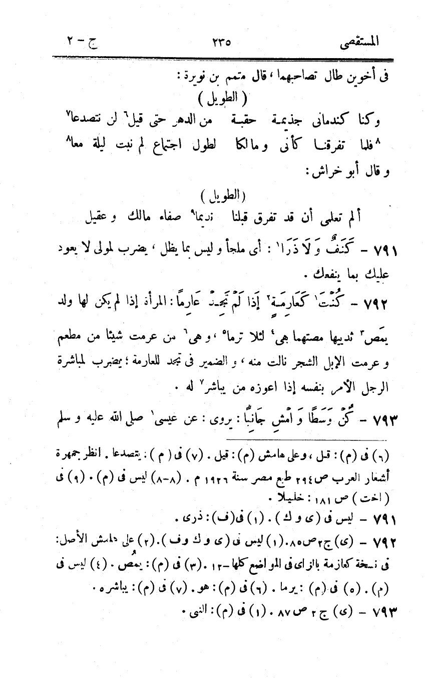 فى أَخَوَيْنِ طَال تصاحبهما قَالَ متمم بن نُوَيْرَة