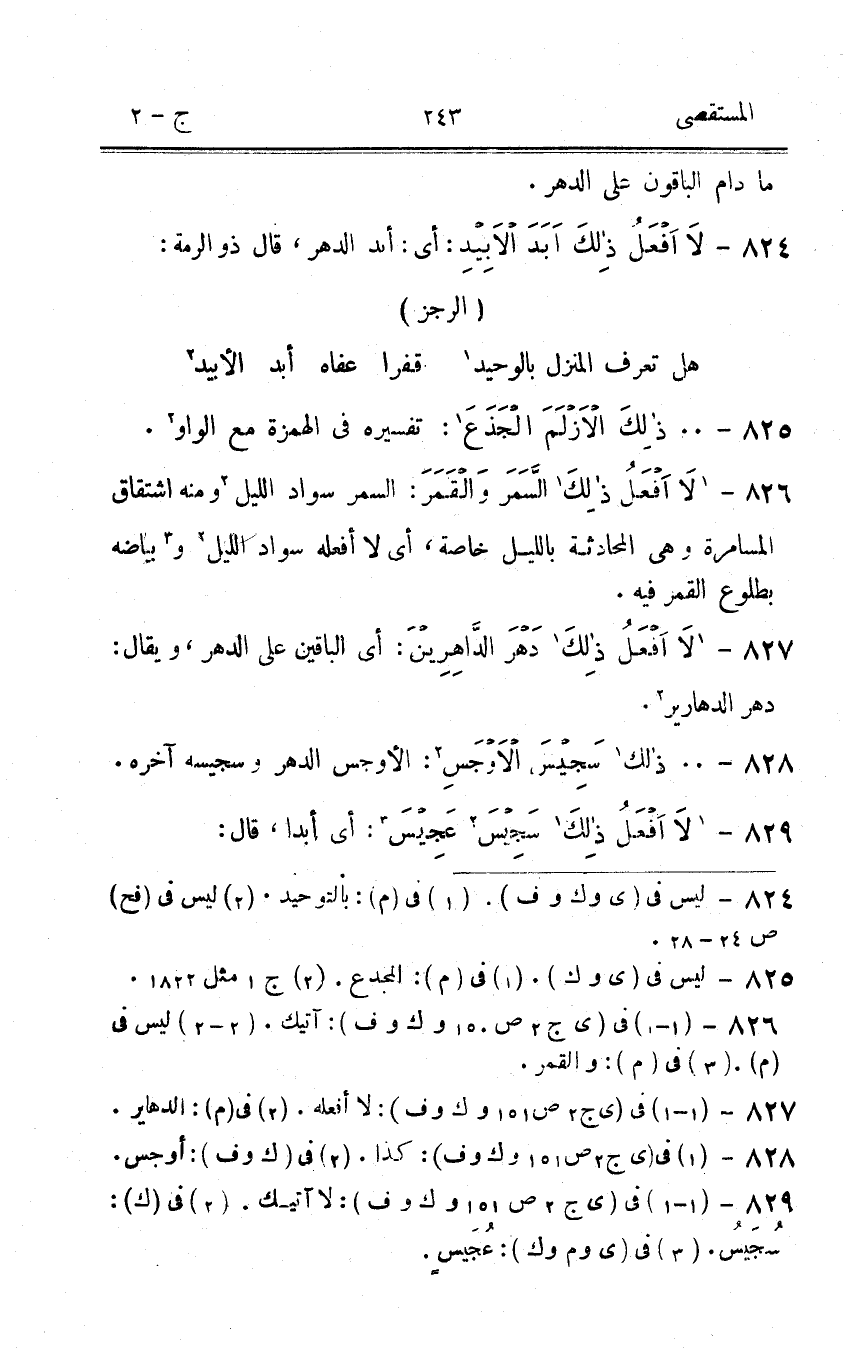 828 - ذَلِك سجيس الاوجس الأوجس الدَّهْر وسجيسه آخِره