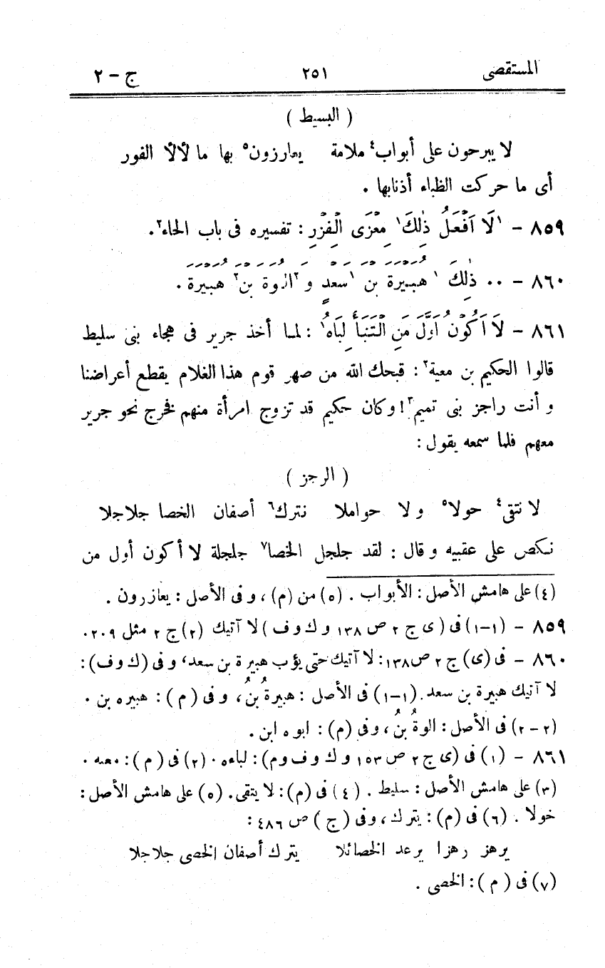861 - لَا اكون اول من التنبأ لباه لما أَخذ جرير فى هجاء بنى سليط قَالُوا الْحَكِيم بن معية قبحك الله من صهر قوم هَذَا الْغُلَام يقطع أعراضنا وَأَنت راجز بنى تَمِيم وَكَانَ حَكِيم قد تزوج امْرَأَة مِنْهُم فَخرج نَحْو جرير مَعَهم فَلَمَّا سَمعه يَقُول
