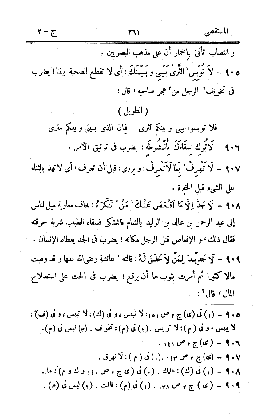 905 - لَا توبس الثرى بينى وَبَيْنك أى لَا تقطع الصُّحْبَة بَيْننَا يضْرب فى تخويف الرجل من هجر صَاحبه قَالَ