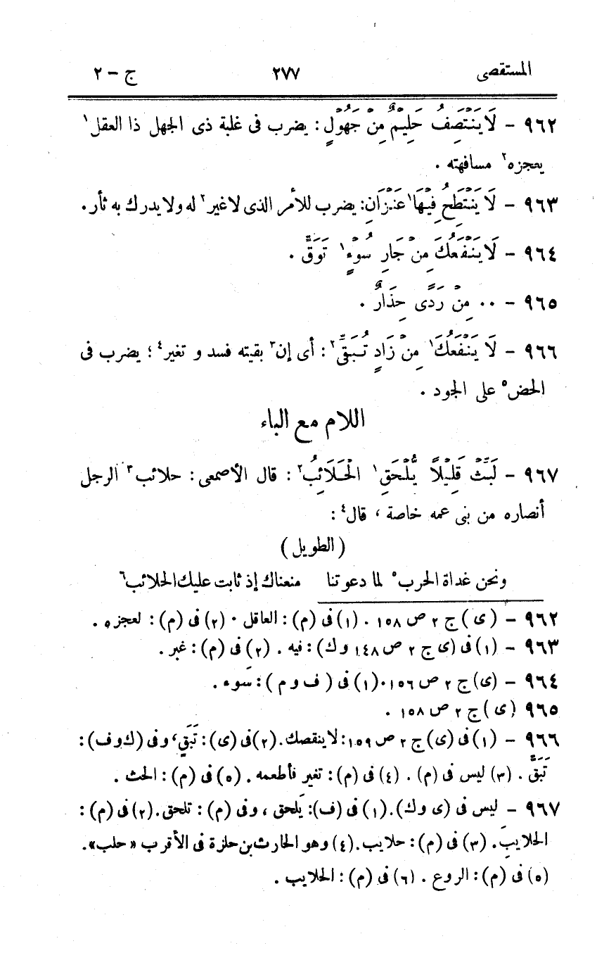 967 - لبث قَلِيلا يلْحق الحلائب قَالَ الأصمعى حلائب الرجل أنصاره من بنى عَمه خَاصَّة قَالَ