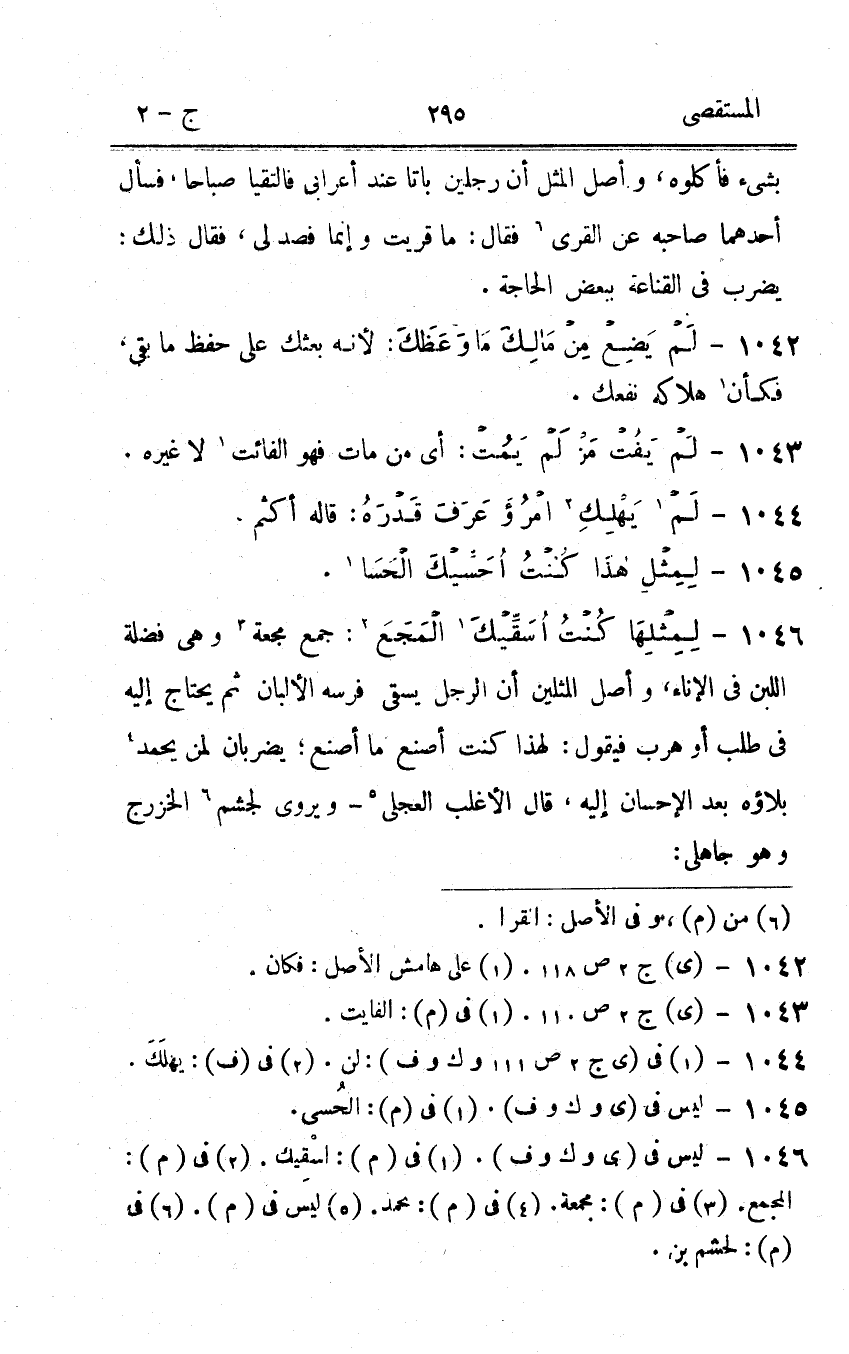 1046 - لمثلهَا كنت اسقيك المجع جمع مجعة وَهِي فضلَة اللَّبن فى الْإِنَاء وأصل المثلين أَن الرجل يسْقِي فرسه الألبان ثمَّ يحْتَاج إِلَيْهِ فِي طلب أَو هرب فَيَقُول لهَذَا كنت أصنع مَا اصْنَع يضربان لمن يحمد بلاؤه بعد الْإِحْسَان إِلَيْهِ قَالَ الْأَغْلَب الْعجلِيّ ويروى لجشم الْخَزْرَج وَهُوَ جاهلي