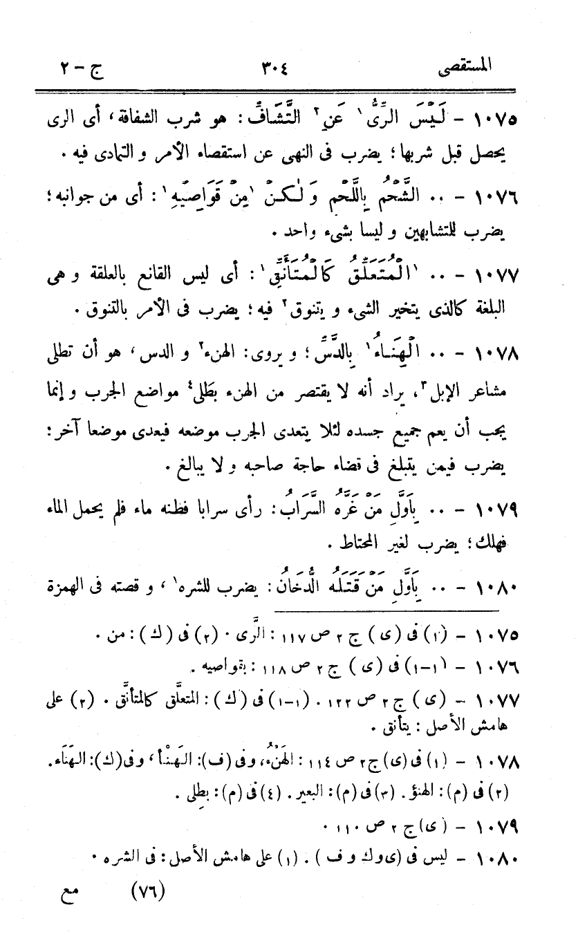 1075 - لَيْسَ الرى عَن التشاف هُوَ شرب الشفافة أى الرّيّ يحصل قبل شربهَا يضْرب فى النَّهْي عَن استقصاء الْأَمر والتمادى فِيهِ