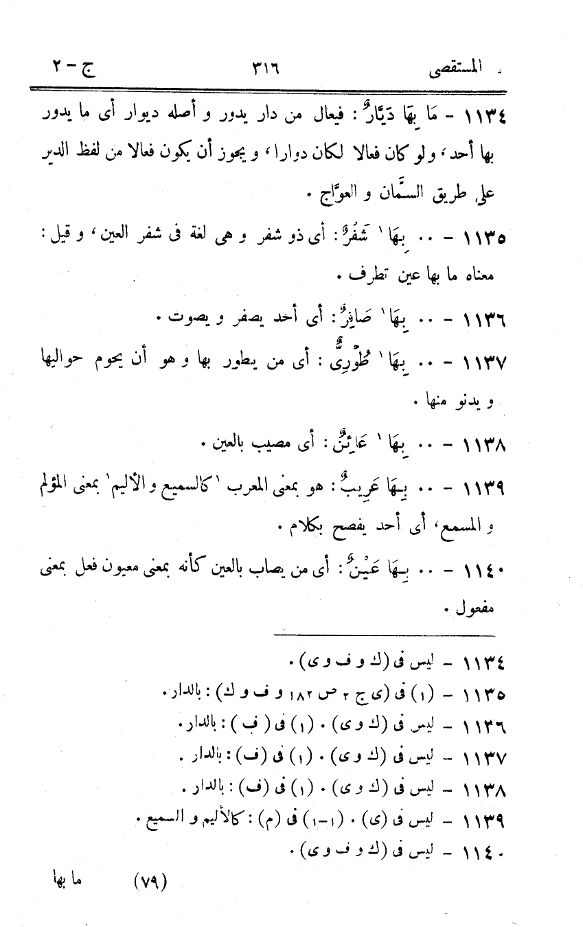 1134 - مَا بهَا ديار فيعال من دَار يَدُور وَأَصله ديوار أَي مَا يَدُور بهَا أحد وَلَو كَانَ فعالا لَكَانَ دوارا وَيجوز أَن يكون فعالا من لفظ الدَّيْر على طَرِيق السمان والعواج