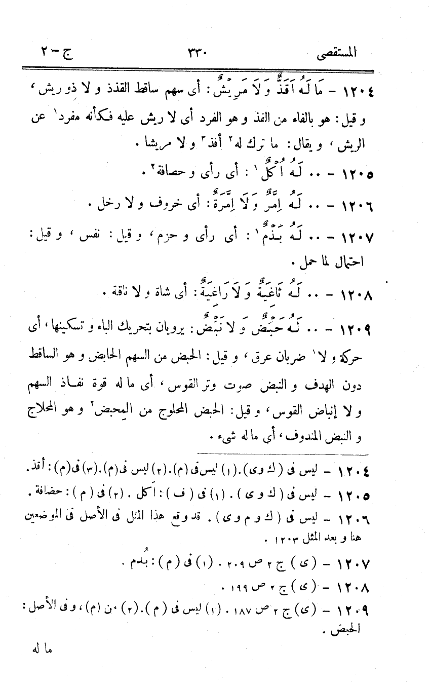 1207 - 00 لَهُ بذم اى رأى وحزم وَقيل نفس وَقيل احْتِمَال لما حمل
