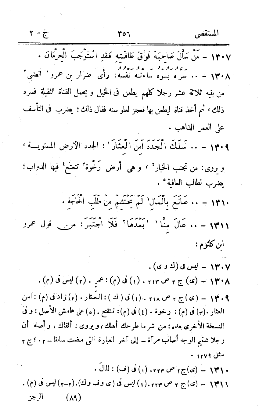 1307 - من سَأَلَ صَاحبه فَوق طاقته فقد اسْتوْجبَ الحرمان