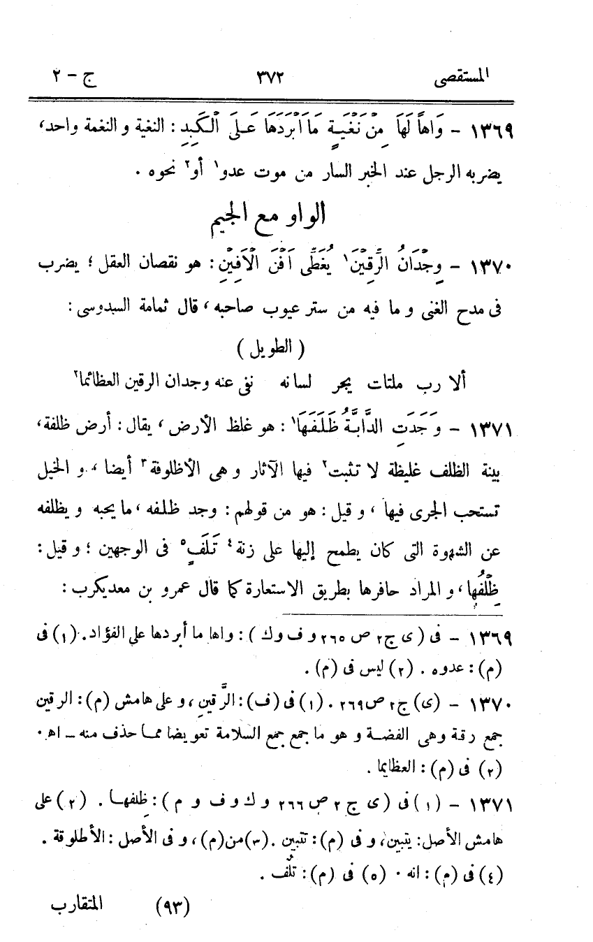 1370 - وجدان الرقين يغطى افن الافين هُوَ نُقْصَان الْعقل يضْرب فى مدح الْغنى وَمَا فِيهِ من ستر عُيُوب صَاحبه قَالَ ثُمَامَة السدوسى