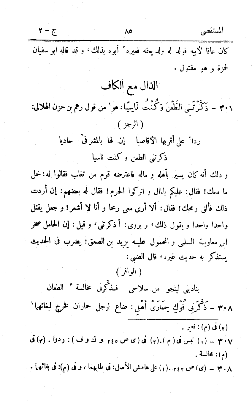 307 - ذكرتنى الطعْن وَكنت نَاسِيا هُوَ من قَول رهم بن حزن الْهِلَالِي