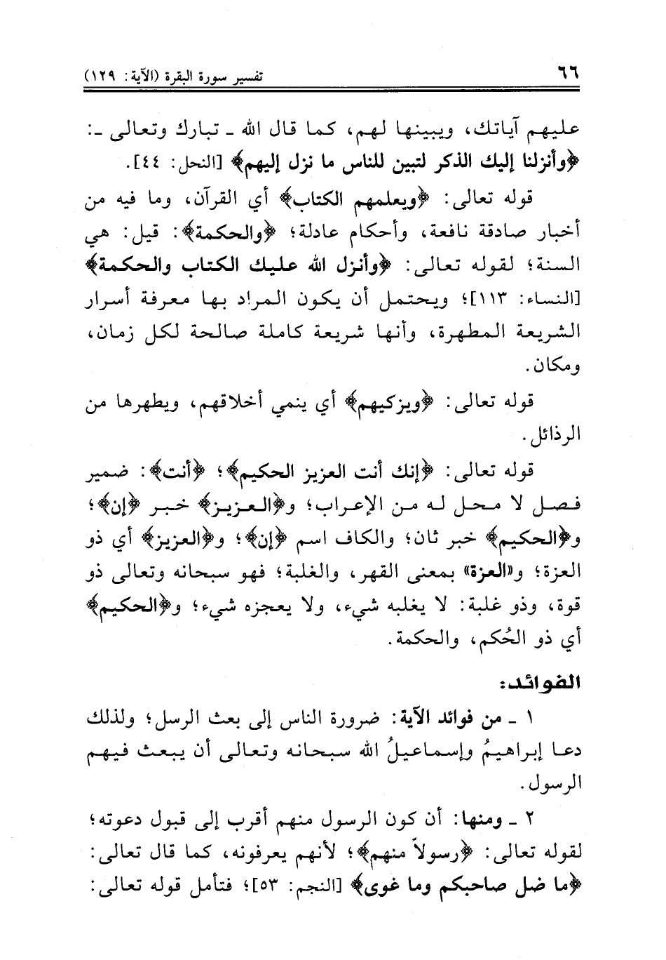 ١ ــ من فوائد الآية: ضرورة الناس إلى بعث الرسل؛ ولذلك دعا إبراهيمُ وإسماعيلُ الله سبحانه وتعالى أن يبعث فيهم الرسول.